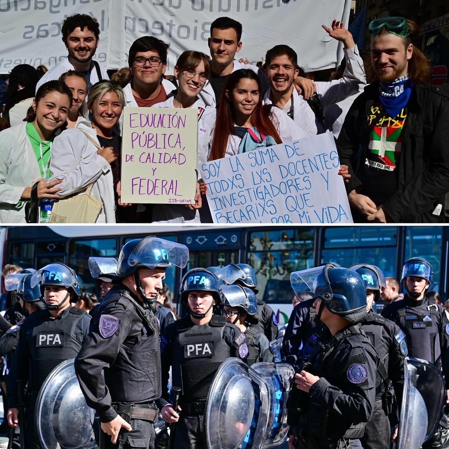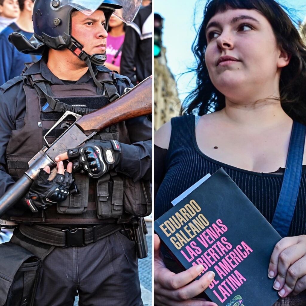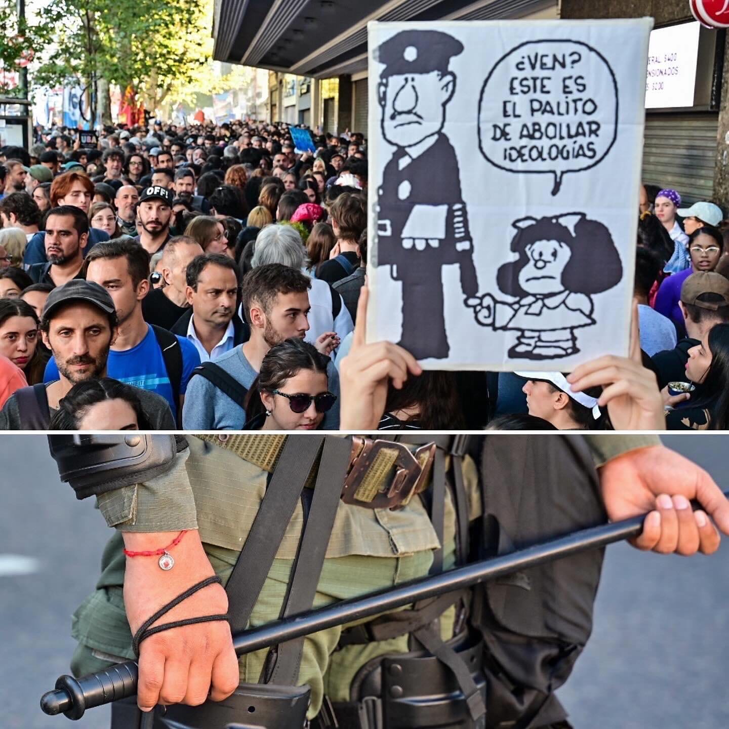 El reportero gráfico, Kaloian Santos Cabrera, compartió en sus redes sociales una nueva entrega de una serie fotográfica que retrata impactantes momentos de la marcha federal universitaria, en la provincia de Buenos Aires. Esta, es la entrega número once de dípticos que el fotoperiodista titula “De qué lado de la mecha te encontras”. Mirá