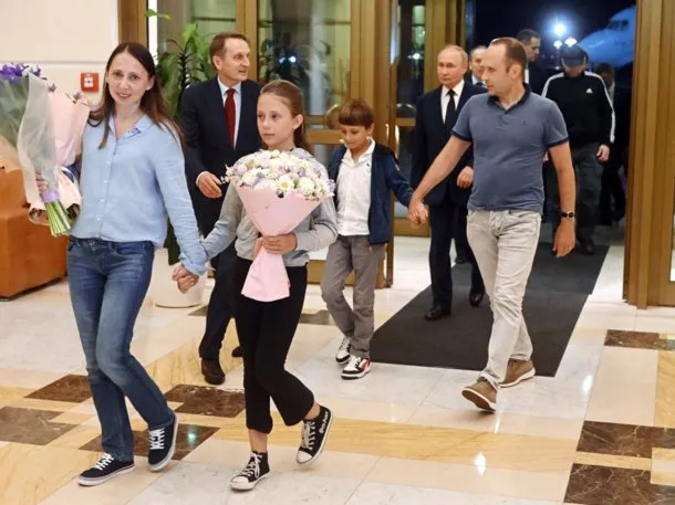 Vladimir Putin les dio la bienvenida en Moscú, donde llamó la atención al saludar con un «buenas noches» a los hijos del matrimonio, quienes no hablan ruso y creían ser argentinos tras vivir durante años en Belgrano. «Le dijimos a los niños que somos rusos, que son rusos y que somos los Dultsev«, dijo una de ellas en una entrevista en la televisión rusa.