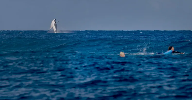 Durante la semifinal entre Tatiana Weston-Webb y Brisa Hennessy, una ballena saltó sobre el agua, brindando a los espectadores y fotógrafos un momento memorable. Las apariciones de animales silvestres, como aves, focas e incluso tiburones, son bastante comunes en competiciones de surf en todo el mundo.