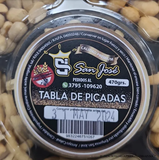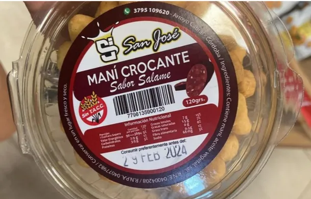 «Prohíbese la elaboración, fraccionamiento y comercialización en todo el territorio nacional, y en las plataformas de venta en línea de los productos: Palitos Salados, marca San José, RNE: 04004504 – RNPA: 04049798, Arroyo Cabral, Córdoba, con el símbolo Sin TACC, Maní crocante sabor Salame, marca San José, RNE: 04004208, RNPA: 04077982, Arroyo Cabral, Córdoba, con el símbolo Sin TACC”, y Tabla de Picadas, RNE 040004505, RNPA 04050248, Envasado y Distribuido por Empresa San José, Arroyo Cabral, Córdoba, con el logo sin TACC”, en cualquier presentación, lote y fecha de vencimiento, por carecer de registros de establecimiento y de producto, por estar falsamente rotulados», indica el informe de la ANMAT.