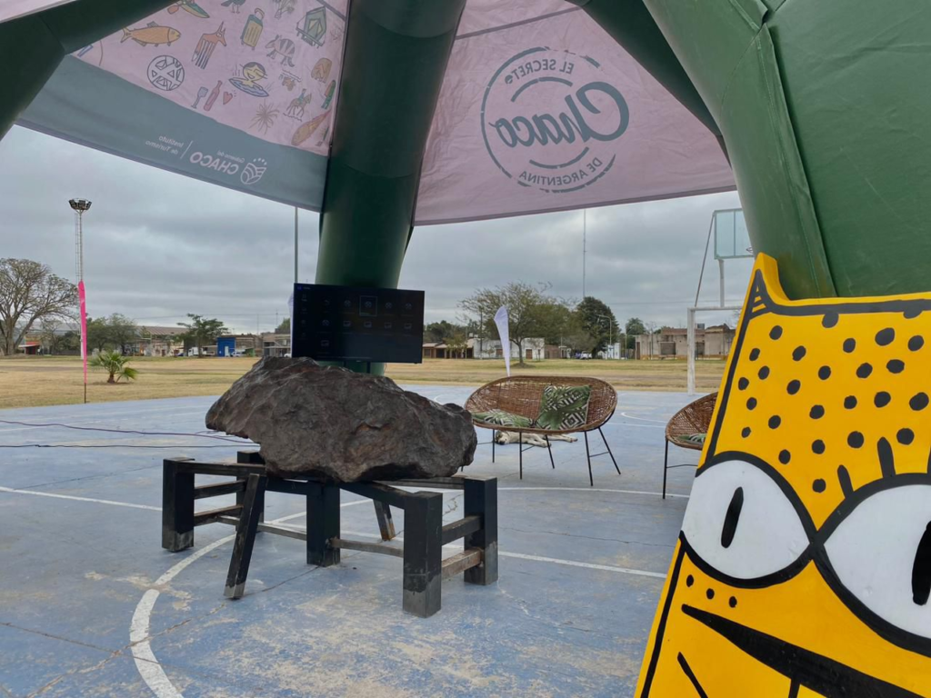 Entonces, se optimizaron los recursos, ya que venía el Meteorito de Entre Ríos, se lo puso en valor en la Bienal del Chaco y de ahí se replica en cada localidad, para despertar la motivación de los chaqueños de querer esto que es nuestro, porque para querer hay que conocer y ese es nuestro trabajo, para que el Meteorito vuelva a su casa pero que también cada localidad lo disfrute y que cuando llegue a su casa, ya haya llegado con la mirada de muchas personas y sea el motivador para que muchas más vayan a verlo a su casa de origen que es Campo del Cielo.»